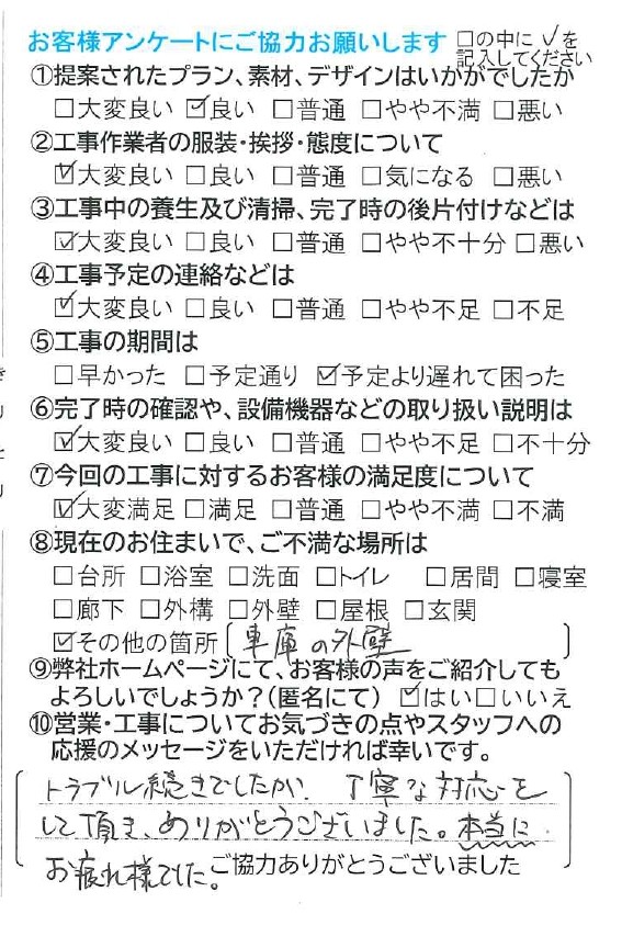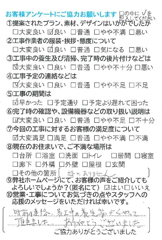 今回の工事で私たちの細かな要望にもきちんと対応して下さりとても感謝しています。
