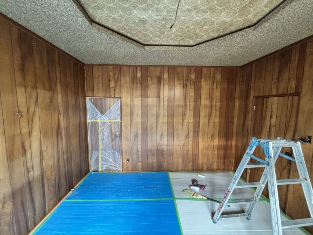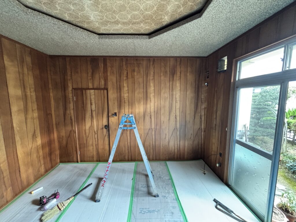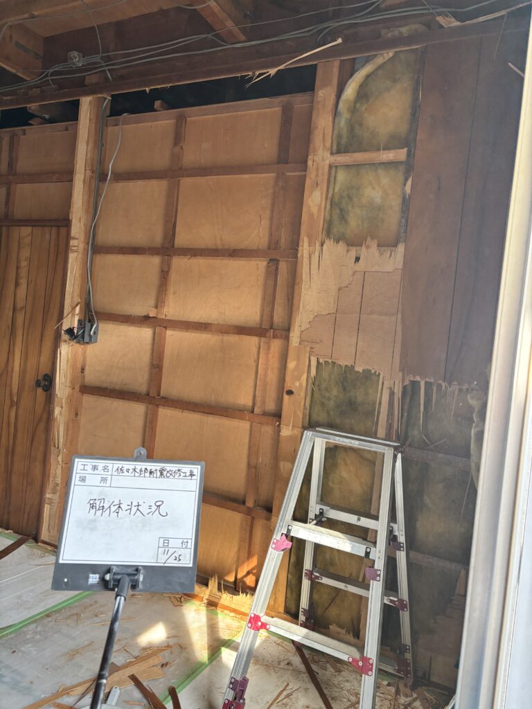 解体状況:仕上げ材を撤去して構造材(柱・梁)を出します。