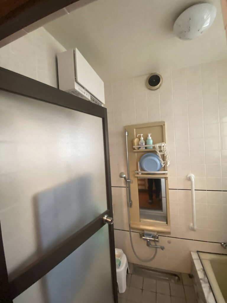 200Vの暖房機はこのような在来工法の浴室でも、20分程度入浴前に作動させておくとしっかりと温まっており、快適に入浴できると喜んでいただきました。