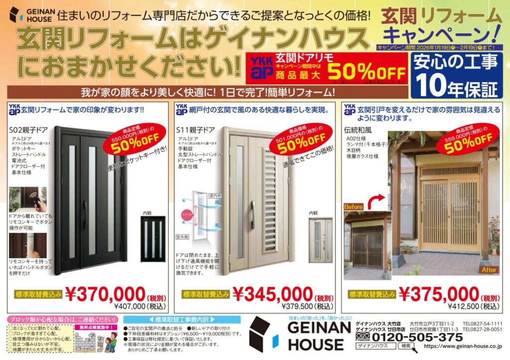 1/19(月)~2/19(木)まで、トイレと玄関のリフォームキャンペーンを行います!